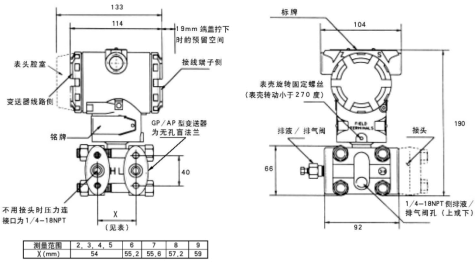 | 零點與量程 | 可用本機量程和零點按鈕調整,或用HART手操器遠程調整 | |